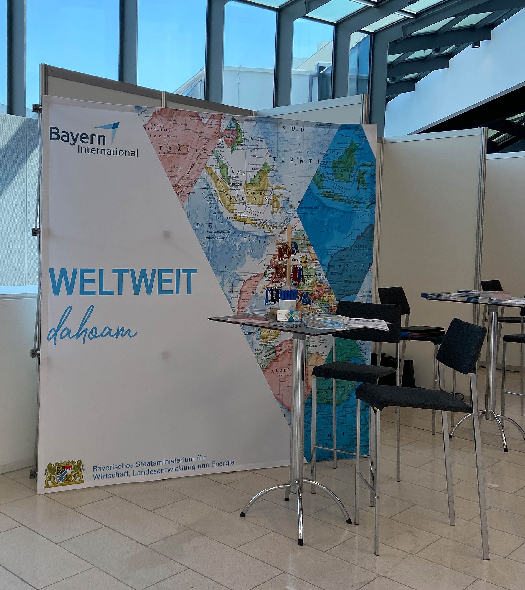 Viele weitere Akteure der bayerischen Wirtschaft waren zudem mit Informationsständen vertreten, so zum Beispiel die IHK Bayern mit der Arbeitsgemeinschaft der bayerischen Handwerkskammern wie auch Bayern International.