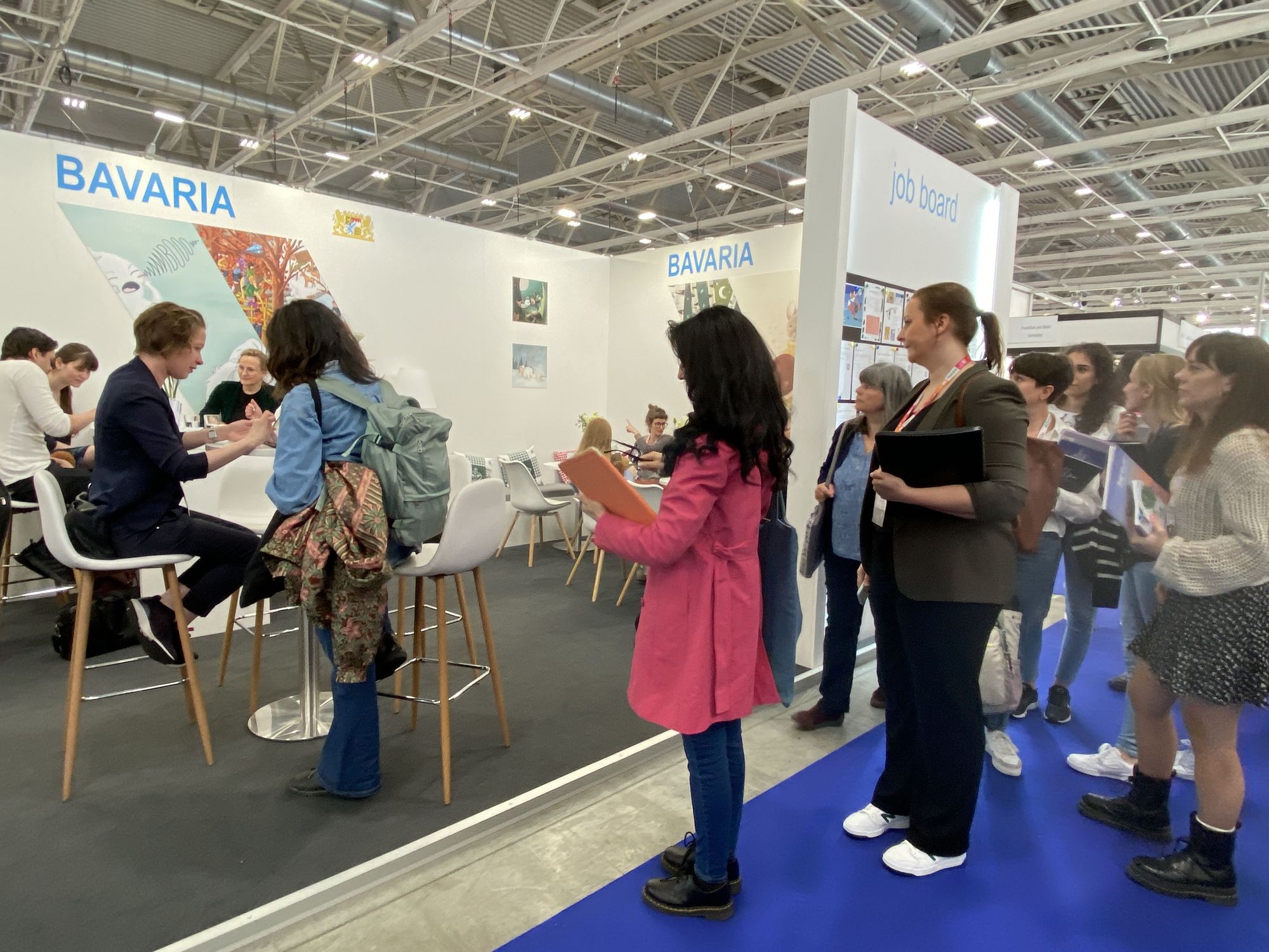 Nach drei intensiven Messetagen waren sich unsere Illustratoren durchweg einig: in kurzer Zeit erhielten sie sehr viel Input für ihre berufliche Weiterentwicklung. Während der gesamten Messe hatten sie eine herausragende Sichtbarkeit am Bayernstand, konnten viele Kontakte zu Verlegern, Experten und Illustratoren knüpfen, sich austauschen, vernetzen und vor allem sich von dieser kreativen Atmosphäre inspirieren lassen.
