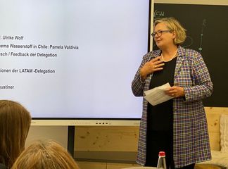 „Durchaus einiges!“, zeigte das Nachtreffen der Delegation in München, das am 28. September stattfand. Nach den Begrüßungsworten von Ministerialdirektorin Dr. Ulrike Wolf (Bayerisches Staatsministerium für Wirtschaft, Landesentwicklung und Energie) gab Pamela Valdivia ein Update zu den Aktivitäten der Repräsentanz, die seither stattfanden bzw. noch geplant sind. Hier wurde klar ersichtlich, dass die strategischen Themen - Nachhaltigkeit, Klimawandel, Digitalisierung und Innovation – gut gesetzt sind und mit Hochdruck am Aufbau von stabilen und langfristigen Partnerschaften mit regionalen Unternehmen gearbeitet wird. Dabei ist der Repräsentanz wichtig, die zentralen Stakeholder aus den Innovationsökosystemen einzubinden – zum Vorteil der Wirtschaft in Bayern und in Südamerika. Pamela Valdivia wies auch auf große Kongresse hin, die 2023 noch stattfinden, wie z.B. die Wasserstoffkonferenzen in Cartagena und in Santiago de Chile oder die Bess & Less Renewables Conference, ebenfalls in Santiago.