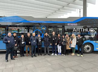 Als weiteren Programmpunkt für die internationalen Gäste organisierte Bayern International vier Bustouren zu bayerischen Unternehmen, die sich mit dem Thema Wasserstoff beschäftigen. Hier kam unter anderem auch der innovative Wasserstoffbus von ARTHUR BUS zum Einsatz. Mit dabei waren z.B. Hydrogenious LOHC, Fraunhofer IISB, die Proton Motor Fuel Cell GmbH und die Schaeffler AG.