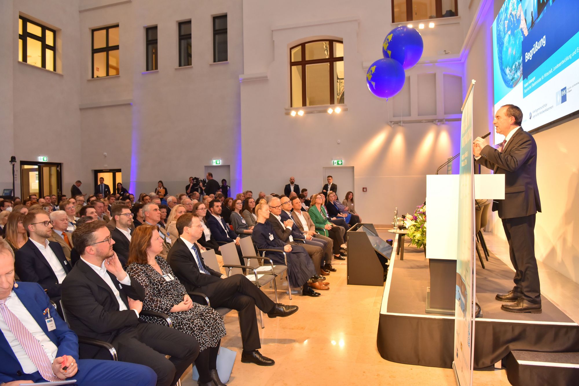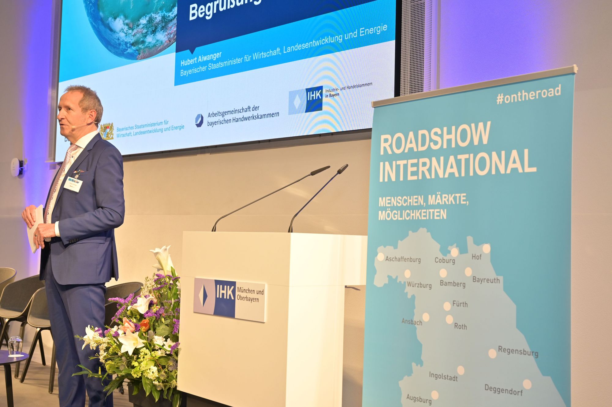 Mit der Kick off-Night und über 260 angemeldeten Teilnehmern legte die Roadshow am 21. März in der IHK für München und Oberbayern einen fulminanten Start hin. Bayerns Wirtschaftsminister Hubert Aiwanger, der die Kick off-Night eröffnete, möchte bayerische Unternehmen ermutigen aktiv zu werden: "Der Sprung ins Ausland ist keine Frage der Betriebsgröße. Kleine und mittelständische Betriebe aus Bayern haben auf den Weltmärkten große Chancen". Damit ist das Ziel der Roadshow gesetzt: Möglichst viele Unternehmen aus Bayern, können und sollen vom breiten Angebot des Außenwirtschafts-Netzwerkes profitieren und sich Unterstützung bei der Internationalisierung holen.