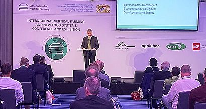 Staatssekretär Roland Weigert (Bayerisches Staatsministerium für Wirtschaft, Landesentwicklung und Energie) beim Vertical Farming Congress (Foto:© BI)