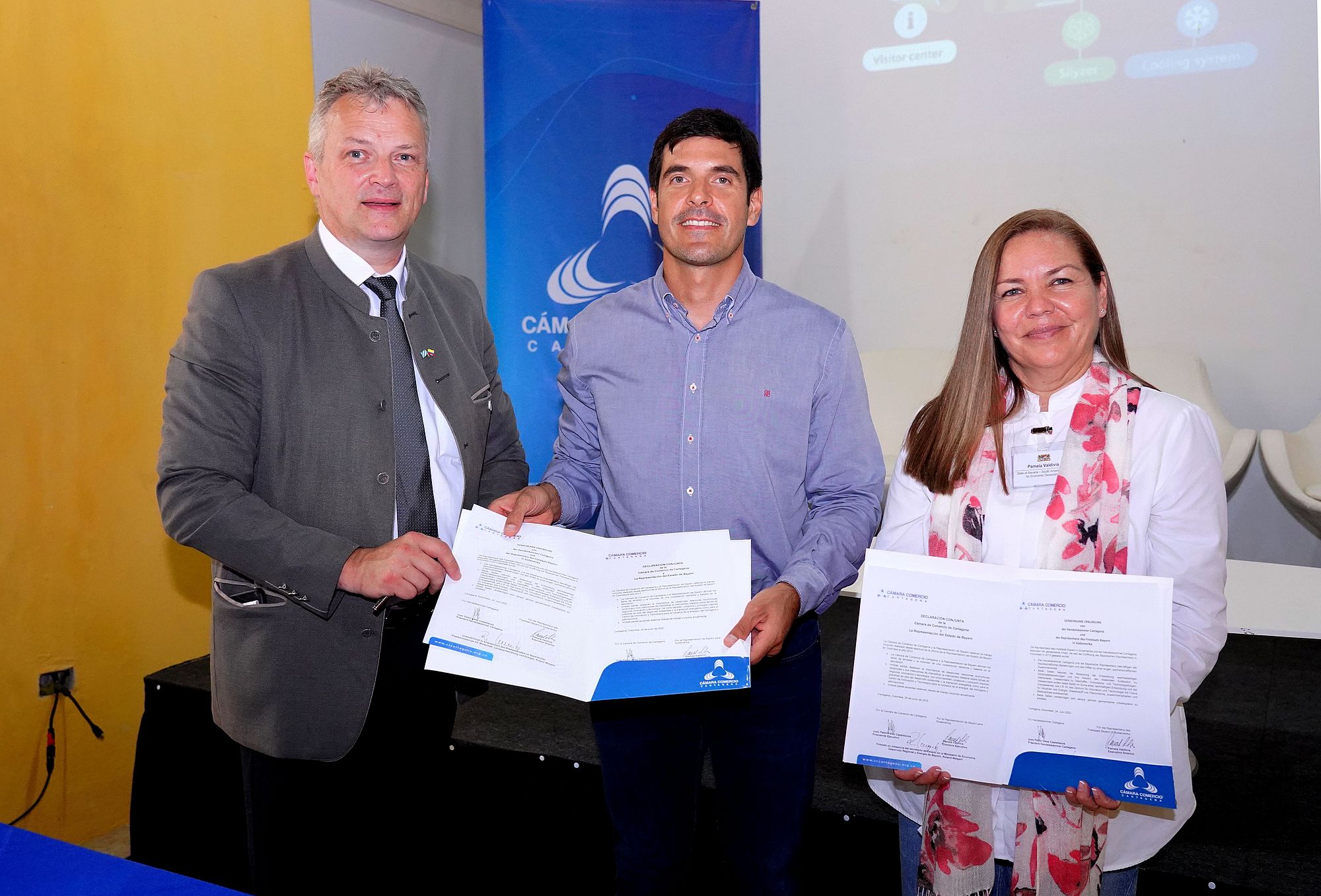 In Cartagena unterzeichneten die örtliche Handelskammer und die bayerische Repräsentantin in Südamerika, Pamela Valdivia (r.), im Beisein von Staatssekretär Roland Weigert einen LOI zum Ausbau der Partnerschaft (Foto: StMWi)